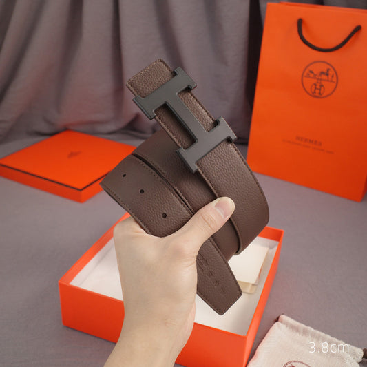 Hermes - 3.8/3.4 classic H-lychee pattern coffee black Buckle