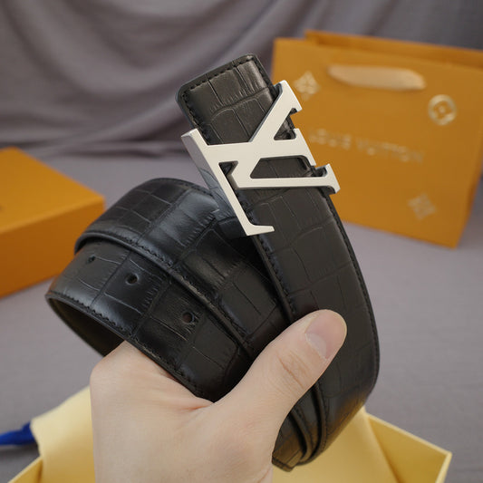 Burberry - 3.4cm - TB Black lychee grain 3501b