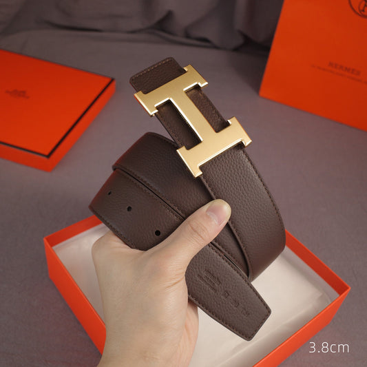 Hermes - 3.8/3.4 classic H-lychee pattern coffee gold Buckle 3801h / 3401h