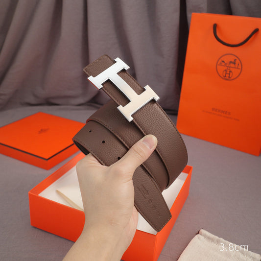 Hermes - 3.8/3.4 classic H-lychee pattern coffee silver Buckle 3801h / 3401h