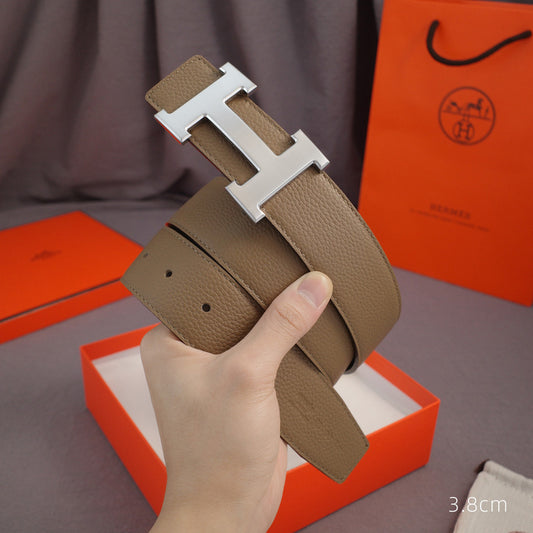 Hermes - 3.8/3.4/2.4cm classic H-lychee pattern khaki silver Buckle 3801h / 3401h / 2401h