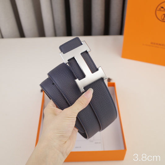 Hermes - 3.8/3.4/2.4cm classic H-lychee pattern bule silver Buckle 3801h / 3401h / 2401h