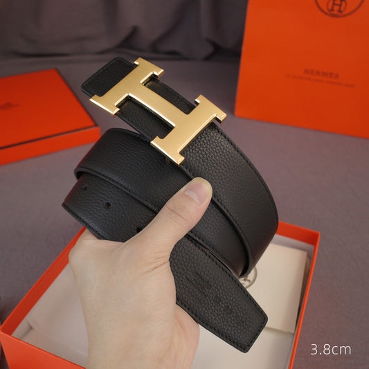Hermes - 3.8/3.4/2.4cm classic H-lychee pattern black gold 3801h / 3401h / 2401h