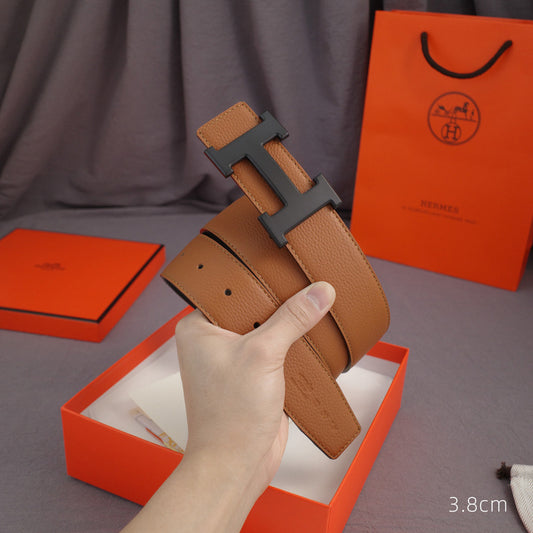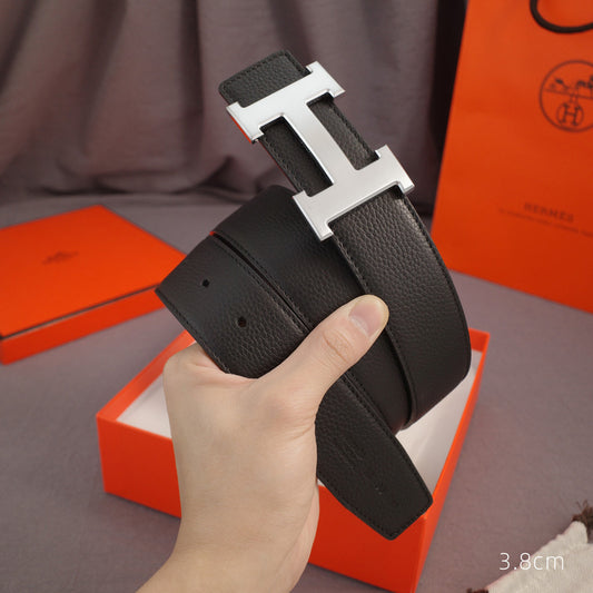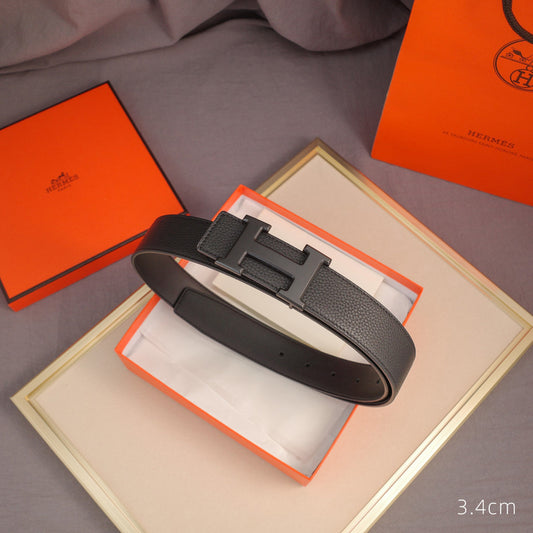 Hermes - 3.8/3.4/2.4cm classic H-lychee pattern black black Buckle 3801h / 3401h