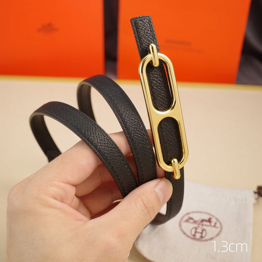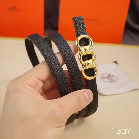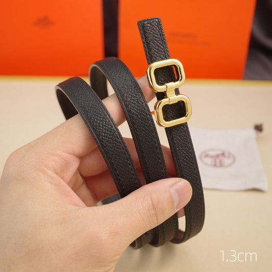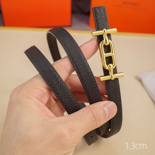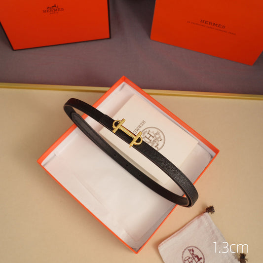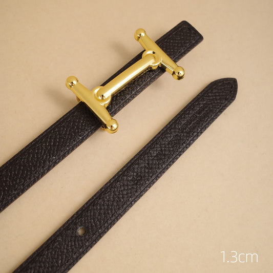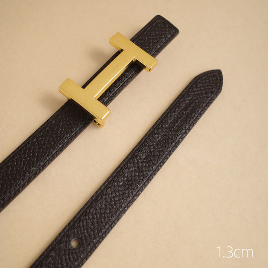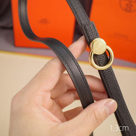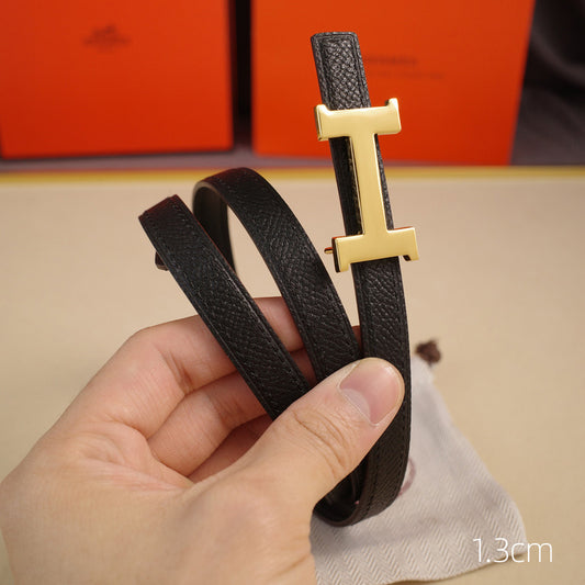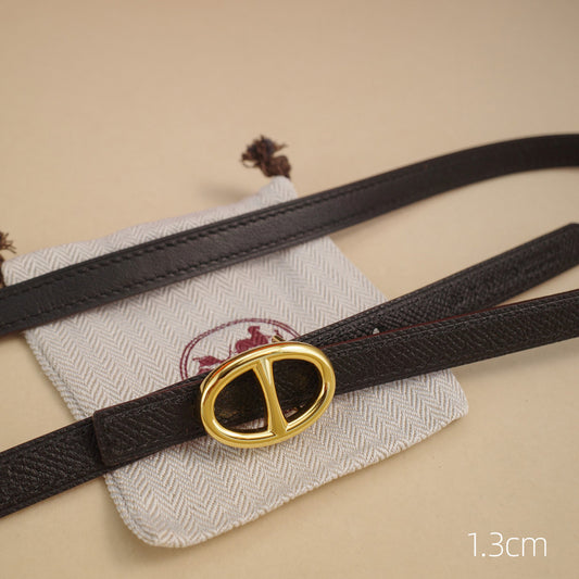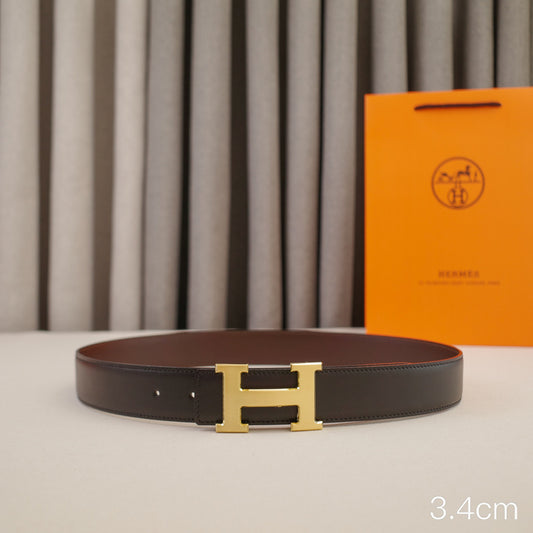 Hermes - 3.8/3.4/2.4cm Classic H-shaped stringing gold - double-sided black coffee ZSB3811h