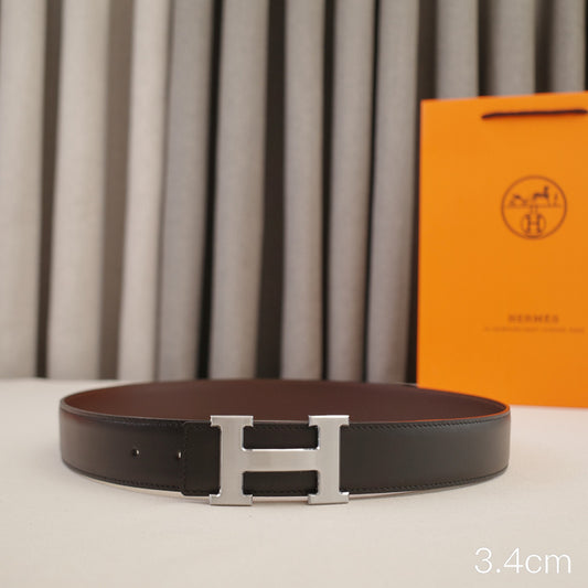 Hermes - 3.8/3.4/2.4cm Classic H-shaped silver with a double-sided black coffee finish ZSB3811h