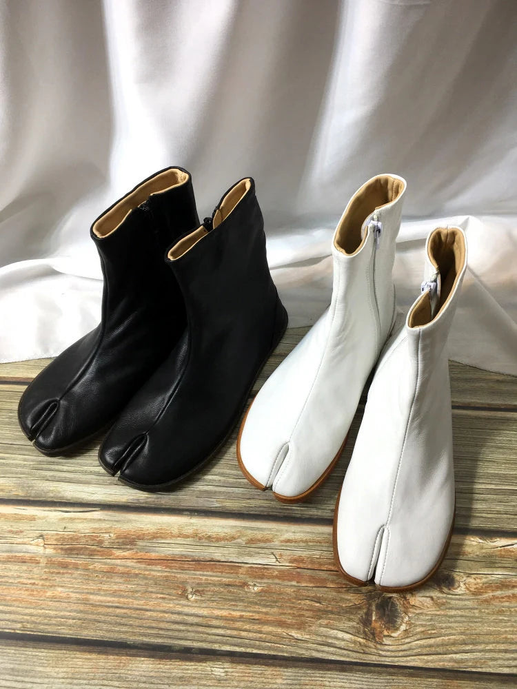 Handmade Men's Black Leather Tabi Shoes,Split Toe shoes,Men's Leather Shoes Personal Stylish Shoes,Men's Boots