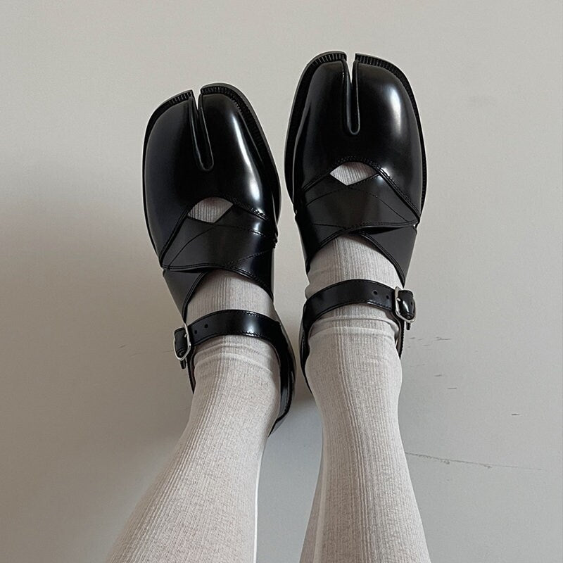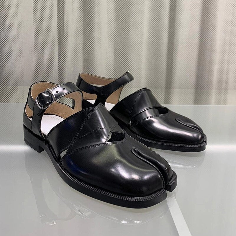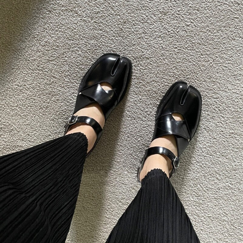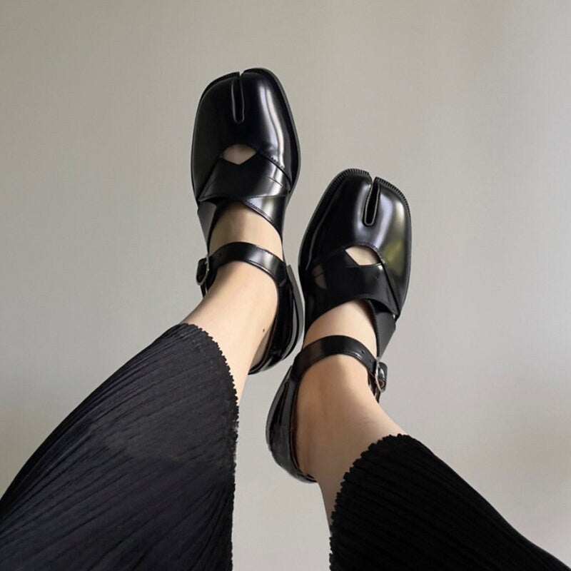 Handmade Women Flat Leather Slip-toe Shoes,Black Tabi Shoes,Women leather Sandals,Mens Sandals,flat sandals