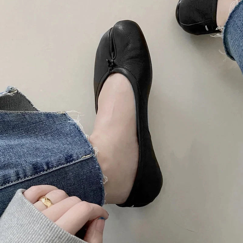 Handmade Women Leather Tabi Shoes,Split Toe shoes,Women's Leather Flat Shoes,Personal Shoes for Women,Flat Slip-ons