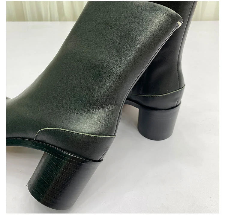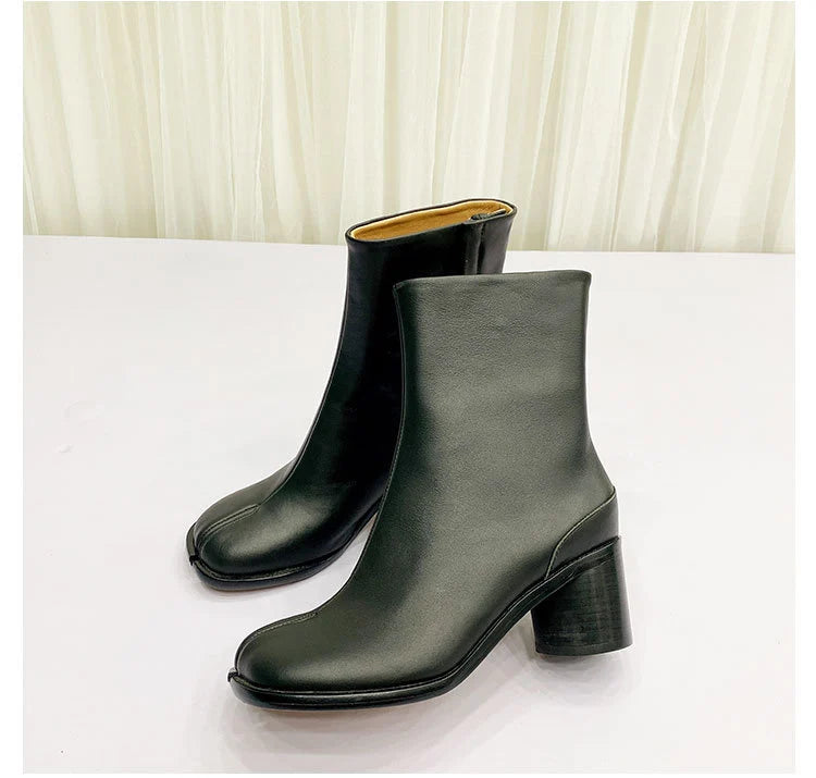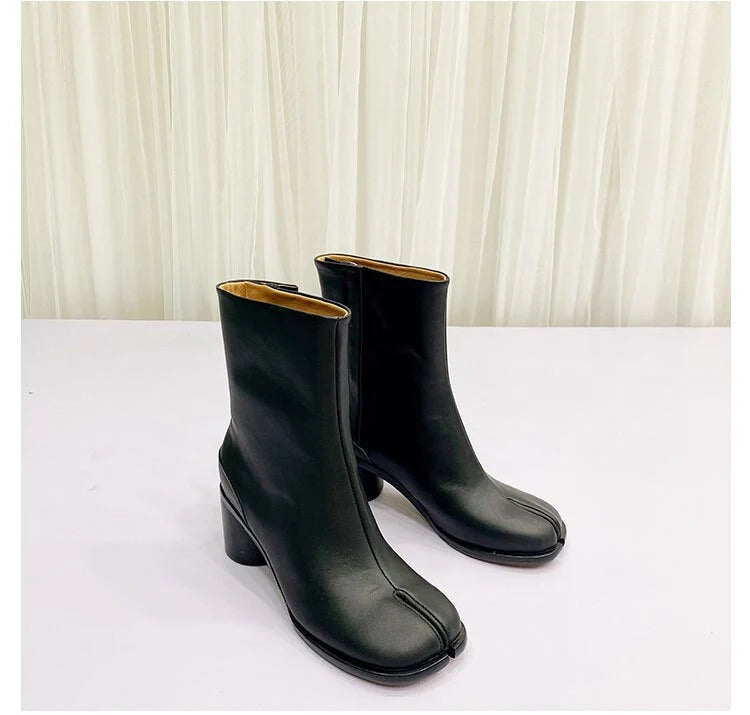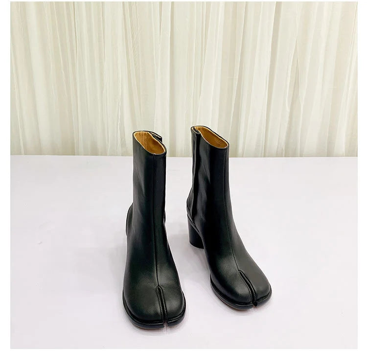 Split-Toe Leather Men’s Women’s Boots,6cm Heels Tabi Boots,Personal Handmade Women Leather Boots,Women Shoes for Autumn & Winter,Black