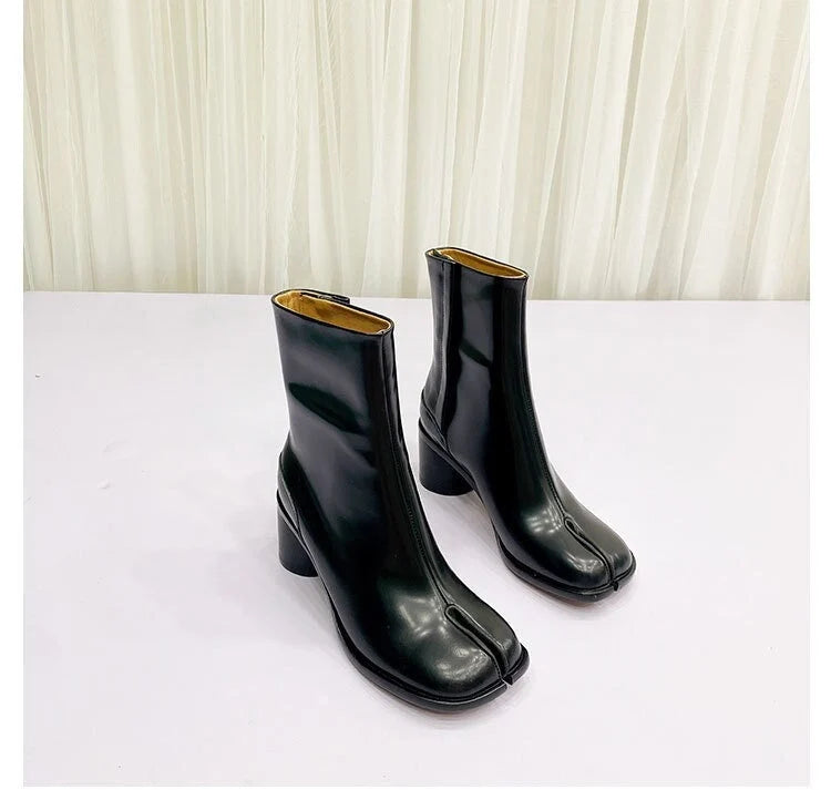 Split-Toe Leather Men’s Women’s boots,Personal Handmade Women Leather Boots,6cm Heels Boots,Women Shoes for Autumn & Winter,Black